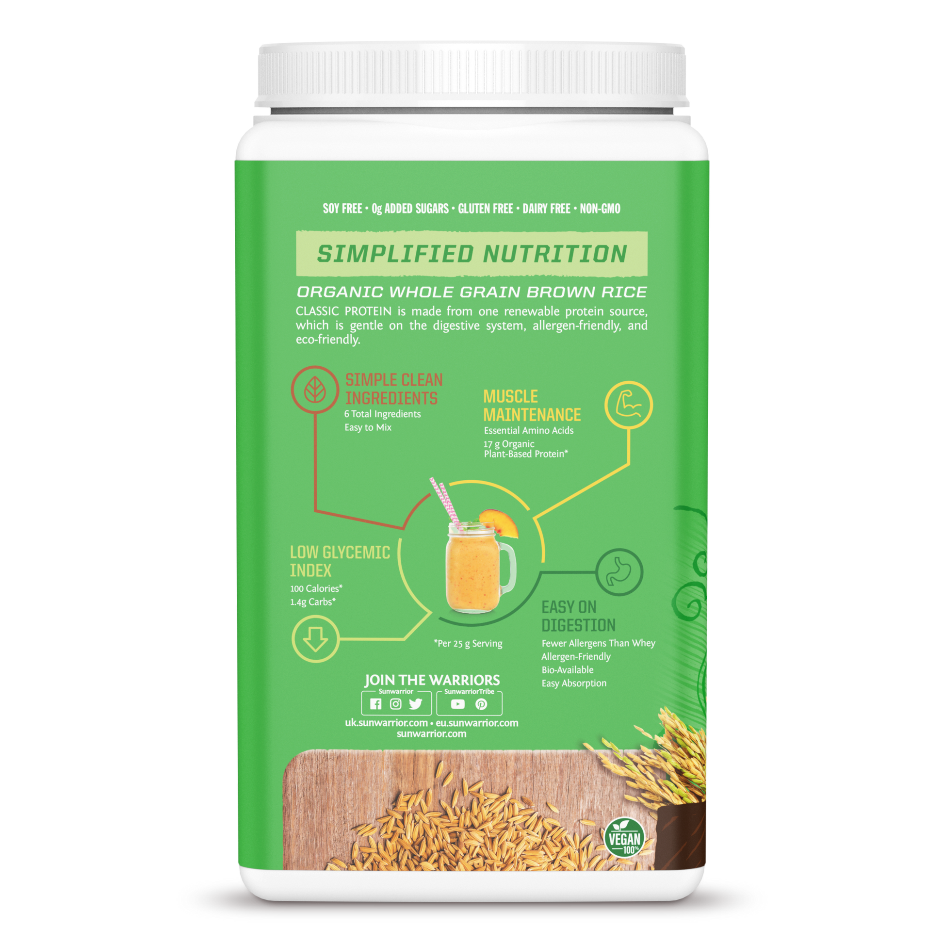 Organic Fermented Brown Rice Protein, Organic Dutch Cocoa, Organic Chocolate Flavor, Organic Guar Gum, Sea Salt, Organic Stevia Extract (Steviol Glycosides).