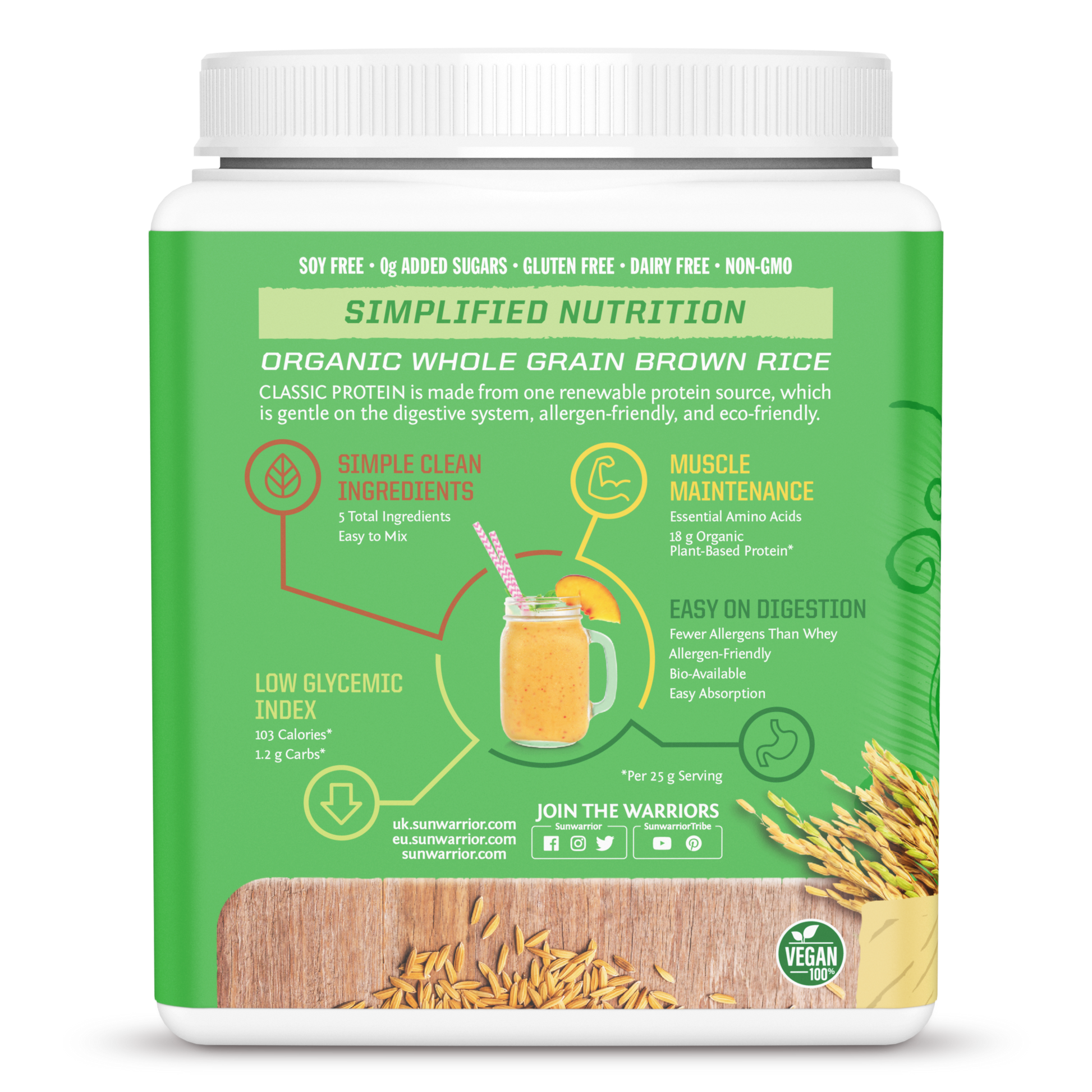 Organic Fermented Brown Rice Protein, Organic Vanilla Flavor, Organic Guar Gum, Sea Salt, Organic Stevia Extract (Steviol Glycosides).